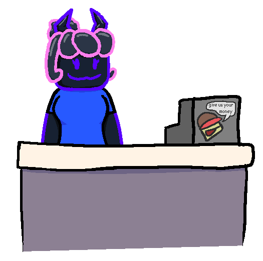 a drawing of vassie at her job in mattiemart. she's one of the few characters in clusterfuck with a confirmed job.