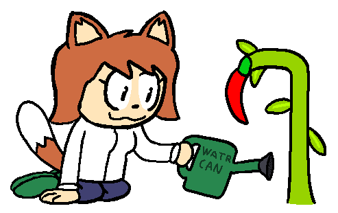 Sara Legot tending to her very spicy chili pepper plant.